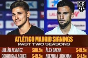 据BR统计,马竞过去两个赛季引援花费总计达4.87亿美元,引进了阿尔瓦雷斯、加拉格尔、勒诺尔芒、汉茨科等人。