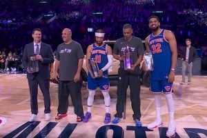 率先登场的卡梅隆队在4分球点位连中3球,最终得分38分让尼克斯队压力大增,后者脸色明显有些惊慌。