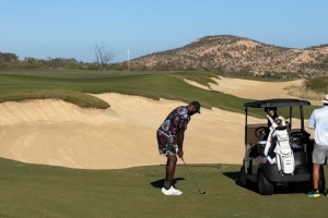 詹姆斯晒出了他在外打高尔夫的照片。