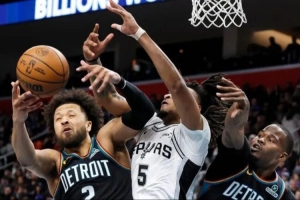 双方一开局就明牌了,活塞绝对不让福克斯与文班亚马舒服,宁可放瓦塞尔们弱侧三分。马刺绝对不让坎宁安舒服,但是会被活塞冲前场篮板球。