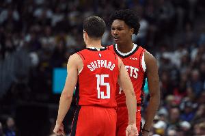 火箭此前首发阵容是:杜兰特、小贾巴里·史密斯、申京、伊森、阿门。